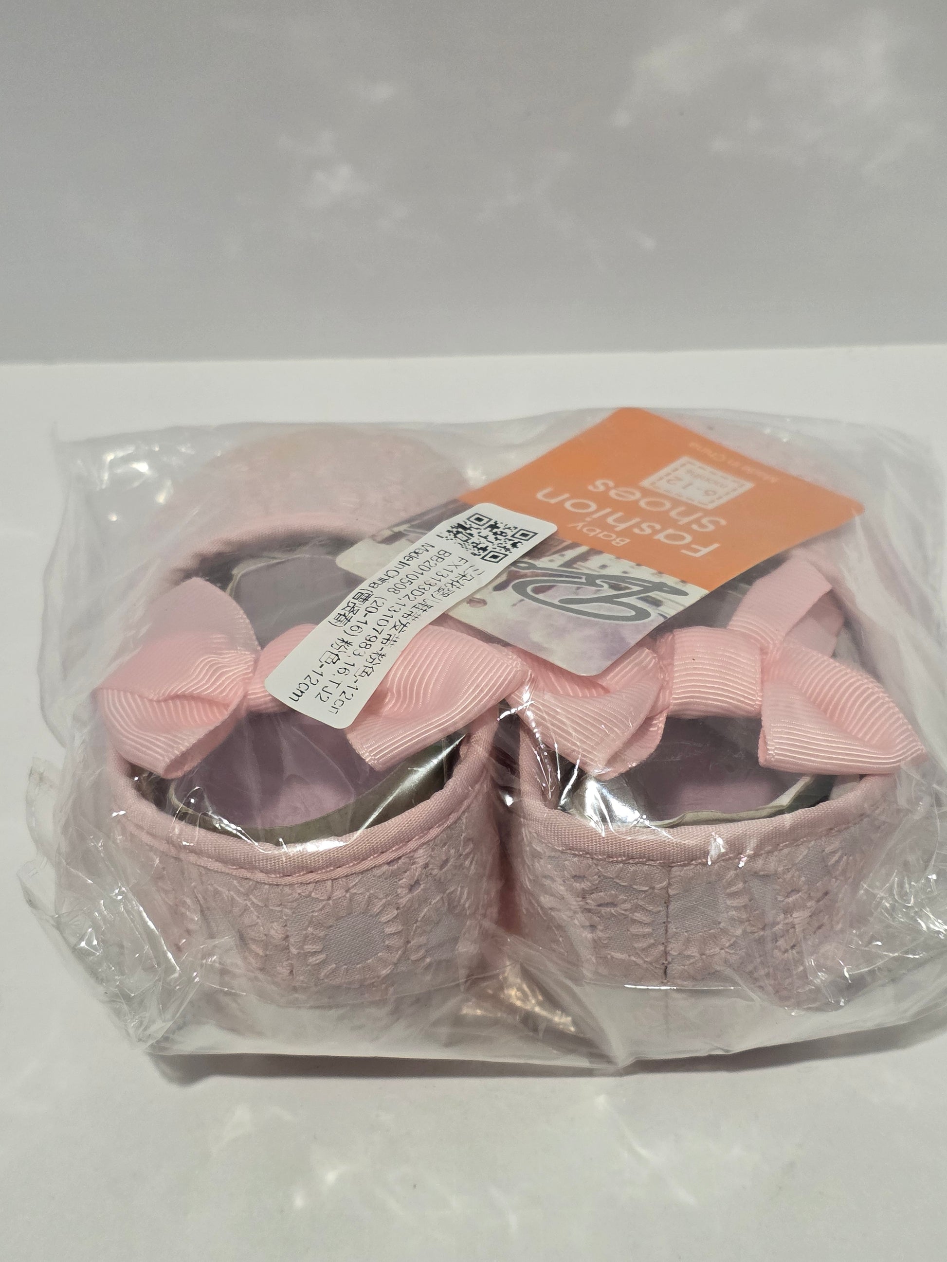 Adorable Baby Fashion Shoes with pink lace and bow. Fits 6–12 months. These shoes feature lace floral embroidery with grosgrain ribbon bows on the front, and a non-slip sole design for added safety. Perfect for everyday wear, baby showers, christenings, photoshoots, or as a thoughtful gift.
