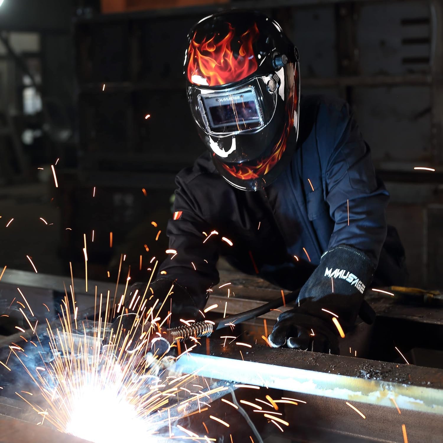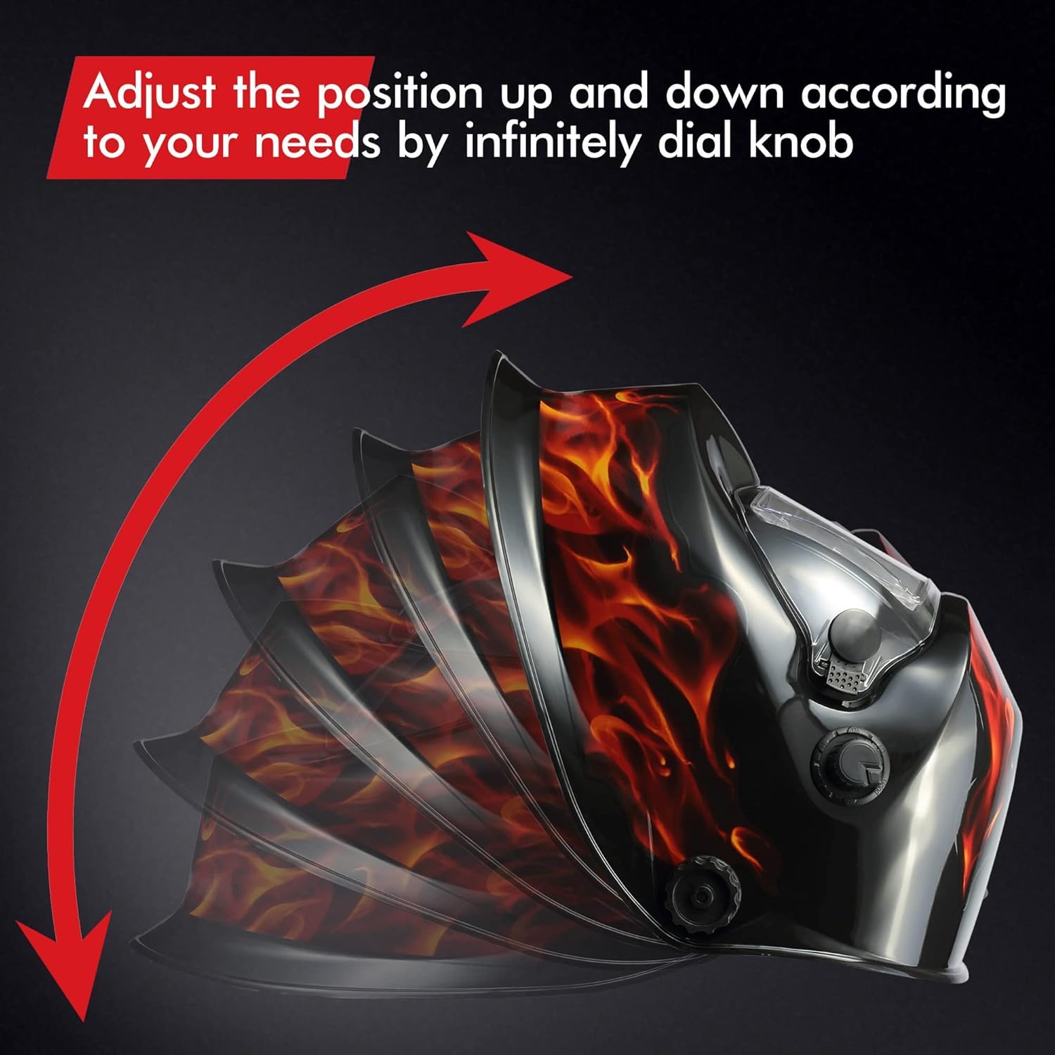 Upgrade your welding safety with this Manusage Auto-Darkening Welding Helmet featuring a bold flame design. Perfect for MIG, TIG, Stick, and plasma applications, this helmet combines comfort, protection, and performance.